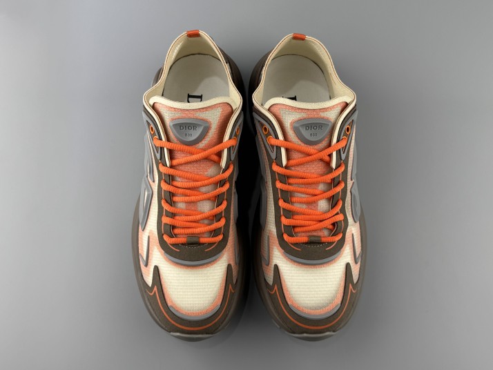 Dior B30 Countdown Tech sneakers are made of multiple layers of transparent nylon + mesh for breathability and futuristic. The tongue and heel have CD30 rubber logos, with full marks for details. Ultra-light foam midsole is comfortable to wear, and seamless bonding technology improves durability.